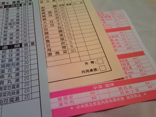 現地の人は、直接、店員に注文を言って伝えますが、中国語が離せなくても、漢字が読めれば、注文表に記入することで、簡単にオーダーはできます。