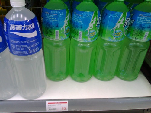 そのような場所で販売されているスポーツドリンクは、コカコーラ社のアクエリアスか台湾企業の舒跑になります。