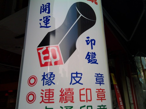 台湾では、街を歩いていると、印鑑屋をよく目にします。多くの場合、「印章」などの看板が出ています。